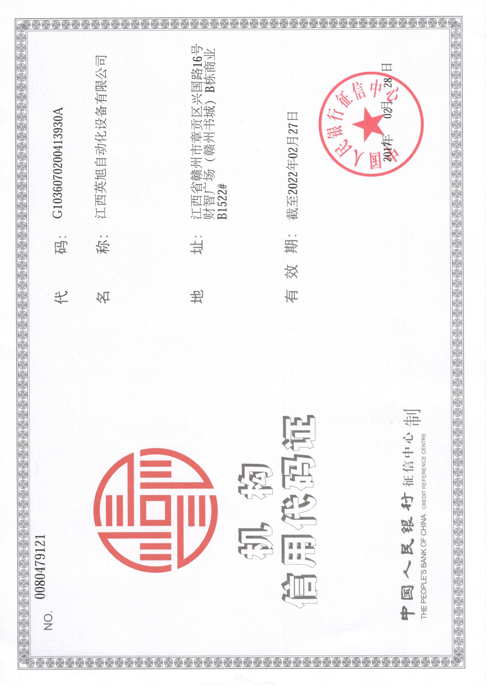 • 機構信用代碼證